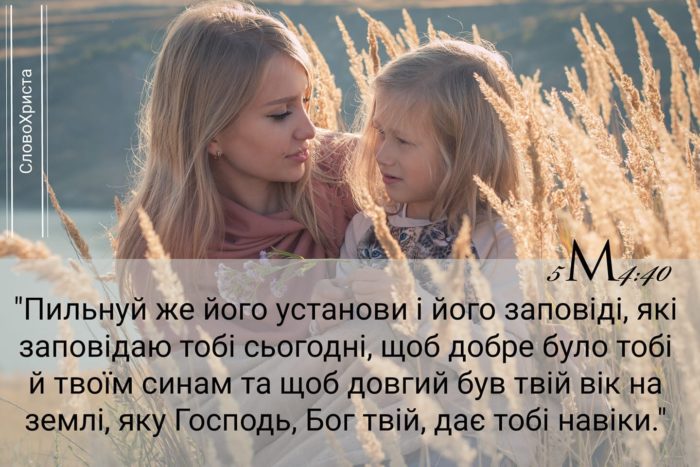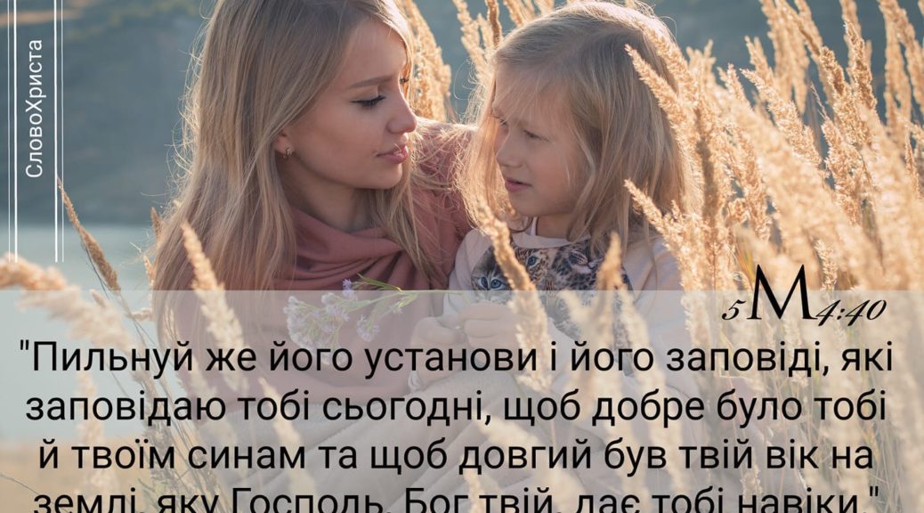 “І будеш пильнувати постанов Його та заповідей Його, що я наказую тобі сьогодні, щоб було добре тобі та синам твоїм по тобі, і щоб ти продовжив дні на землі, що Господь, Бог твій, дає тобі на всі дні.” (5М 4:40)