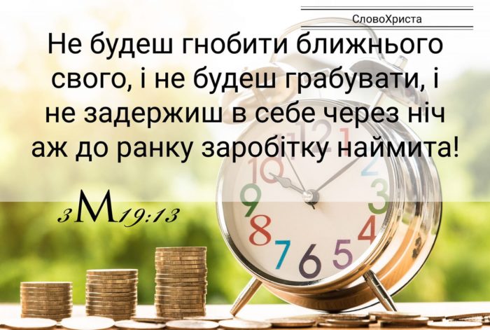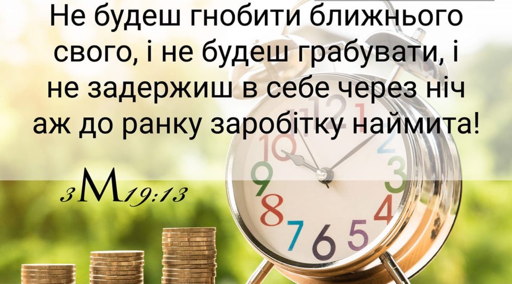 “Не будеш гнобити ближнього свого, і не будеш грабувати, і не задержиш в себе через ніч аж до ранку заробітку наймита.” (3М 19:13)
