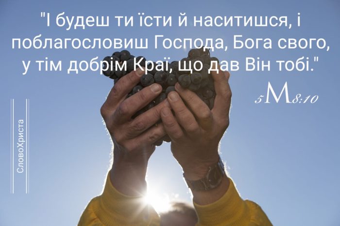 “І будеш ти їсти й наситишся, і поблагословиш Господа, Бога свого, у тім добрім Краї, що дав Він тобі.” (5М 8:10)